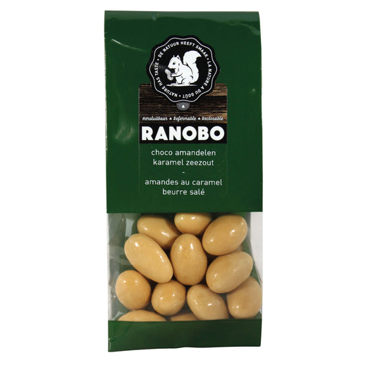 UitverkochtRANOBO CHOCO AMANDELEN KARAMEL ZOUT 175 GR